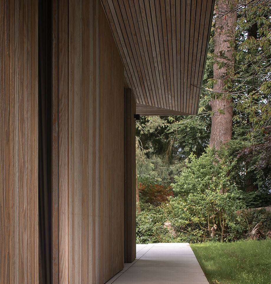Abodo Panelling brings of the warmth of wood to your ceiling or feature eave. Contrast the beauty of natural wood with harder materials to create a beautiful balance.