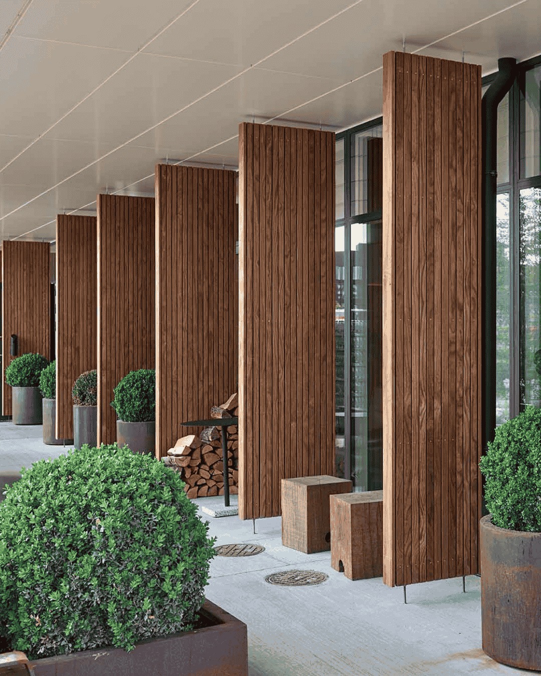 Vulcan Screening is created from thermally modified New Zealand plantation timber and engineered with a vertical grain construction for superior weathering characteristics.