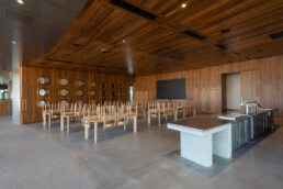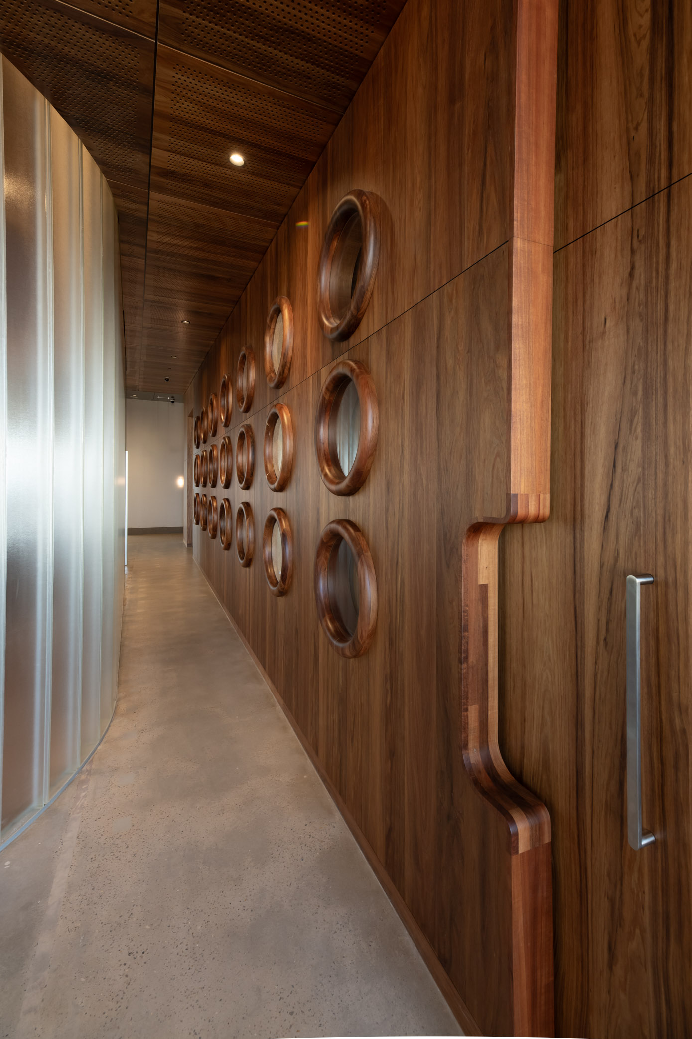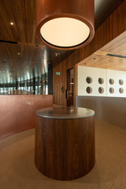 Britton Timbers, trusted supplier of Tasmanian Blackwood for the extensive, high-end joinery components throughout the centre. This iconic Australian hardwood was a deliberate choice to achieve the desired aesthetic and durability: