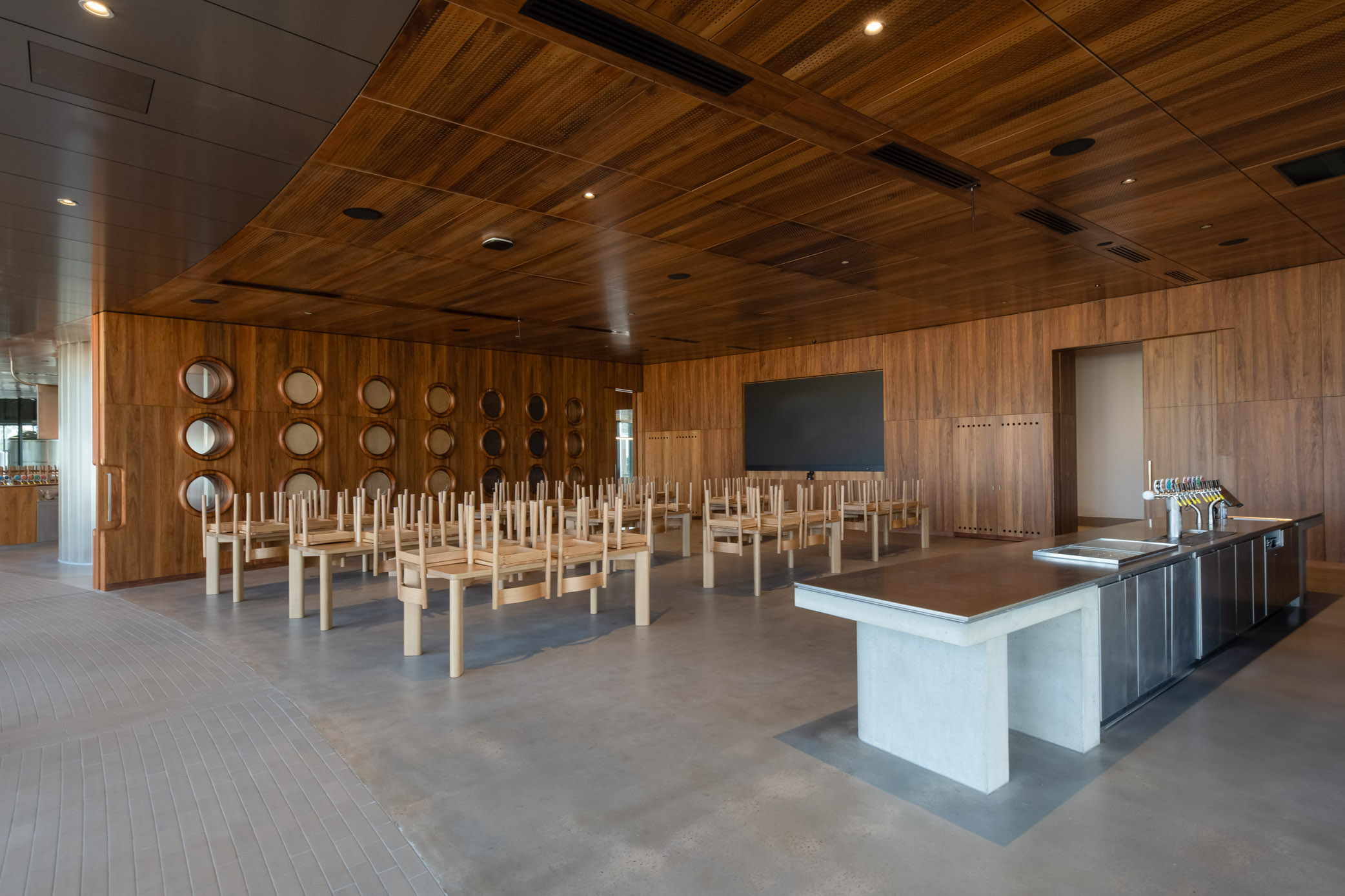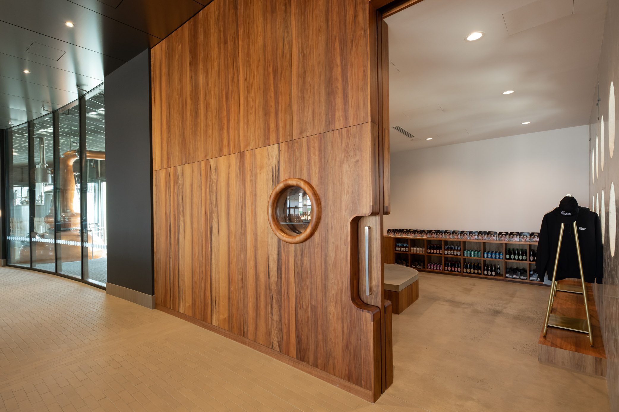 The new Coopers Brewery Visitors Centre, Microbrewery, and Whisky Distillery at Regency Park is a world-class venue designed to immerse guests in the brand's rich history and brewing excellence. The comprehensive internal fit-out, spanning a restaurant, three bars, a tasting room, and interactive displays, required premium materials that could provide both a sense of warmth and sophisticated quality while standing up to high commercial traffic.